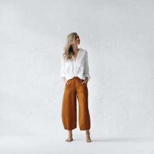 Linen trousers with pockets.