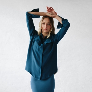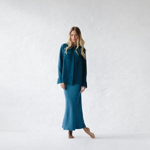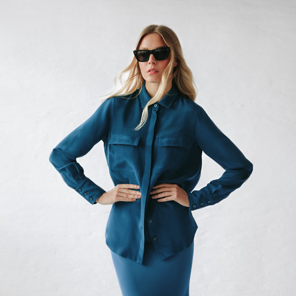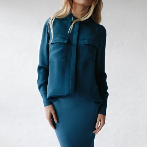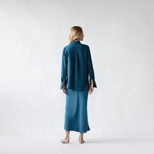 100% silk shirt blue